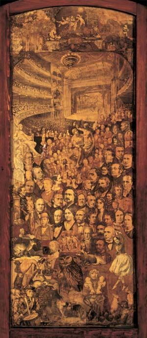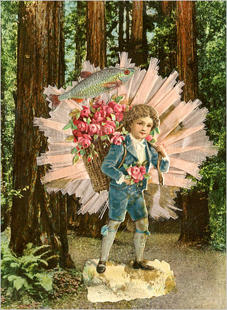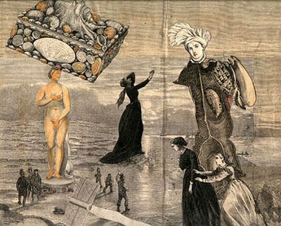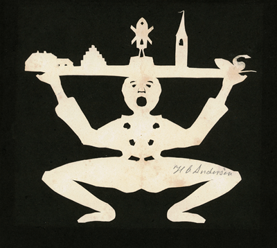 No sé si el premio Nobel Wislawa Szymborska (1923-2012) sabía o no dibujar, lo cierto es que el collage, junto al coleccionismo de miniaturas, era su pasa tiempo preferido. La poetisa polaca comparte con Prévert esa mirada surreal e irónica de la vida, y parece ser que una vez terminadoelcuadro lo daba en beneficencia o lo regalaba a sus amigos. Lo mismo hacía el danés Hans Christian Andersen (1805-1875) quien, en cambio, sabía dibujar muy bien. Andersen creaba complicadas siluetas de papel que regalaba a los hijos de sus conocidos. Adoraba crear personajes extraños, llenos de misterio y de simbologías. ¡Todo un reto para la fantasía! En el invierno de 1873, enfermo y obligado a permanecer en casa, se dedica a la creación de ocho collages en los que rememoraetapas de su vida. En ellos se entrecruzan personajes, monumentos, lugares, en fin, toda una serie de figuras recortadas, superpuestas y pegadas sobre grandes paneles.